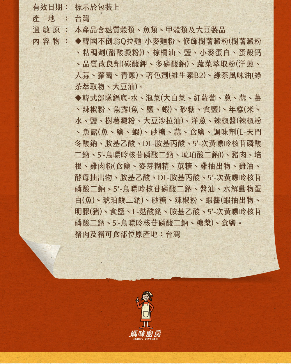 【陸仕食品】媽咪廚房|韓式部隊鍋 590g 1入組